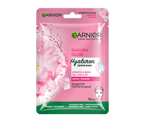 The Japanese Sakura flower extracts in this Garnier sheet mask add a rosy pink glow to dull and tired looking skin.