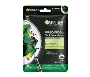 Garnier Pure Charcoal serum sheet mask is enriched with charcoal to remove impurities, toxins, and blemishes and detoxify your skin.